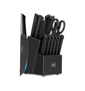 • 【𝐊𝐧𝐢𝐟𝐞 𝐒𝐞𝐭 𝐂𝐨𝐧𝐭𝐚𝐢𝐧𝐬】15-Piece Knife Set Includes: 8-Inch Chef’s Knife, 8-Inch Slicing Knife, 7-Inch Bread Knife, 7-Inch Santoku Knife, 8-Inch Slicing Knife, 7-Inch Slicing Knife, 7-Inch Bread Knife, 7-Inch Santoku Knife, 7-Inch Santoku Knife bread knife, 7-inch Santoku knife, 4.5-inch utility knife, 3.5-inch paring knife, six 4.5-inch serrated steak knives, kitchen scissors and black hardwood knife block.